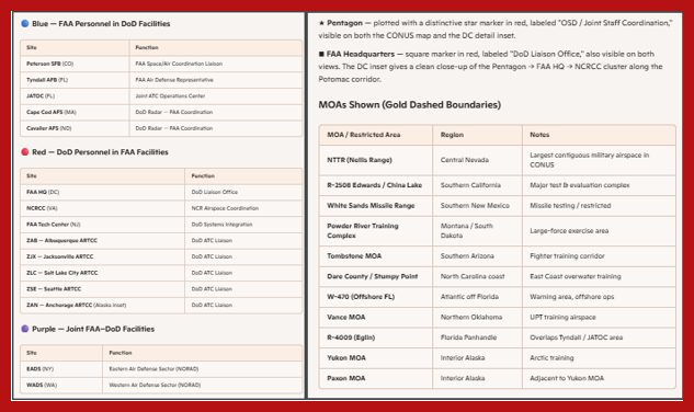 Yet both agencies have also depended on each other for decades: the FAA needs DoD radar, surveillance, and security coordination; the DoD needs FAA airspace access and ATC services.
