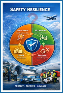 - an impressive advance in SMS is what he calls Safety Resilience. It appears that Safety resilience is the demonstrated ability of Boeing products, processes, and organizations to ANTICIPATE, WITHSTAND, RECOVER FROM, AND LEARN FROM SAFETY‑RELATED HAZARDS AND OPERATIONAL DISRUPTIONS. It reflects a proactive safety posture that ensures the continued protection of people, property, and the integrity of the aerospace system.