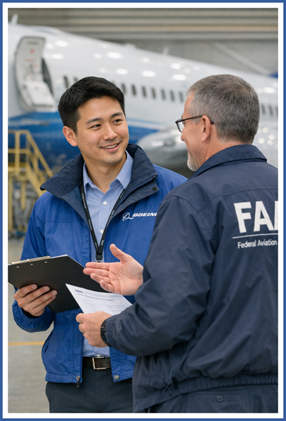 - He recognizes that the challenge that both Boeing engineers with FAA specialists are young and takes care to assure that their work is within their respective competences.