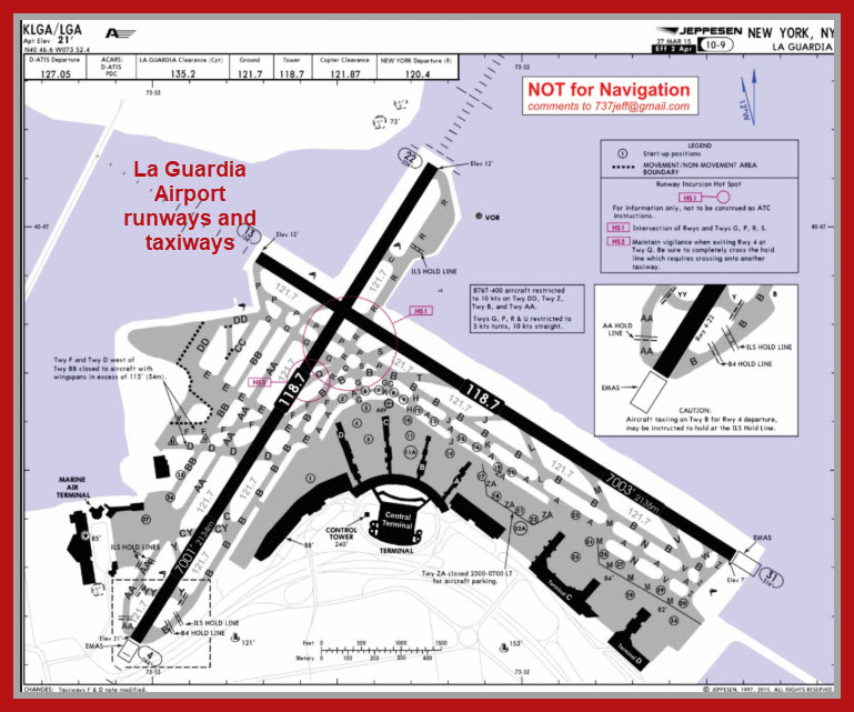 LaGuardia, the closest major airport to Manhattan, is one of the busiest airports in the U.S. that commonly sees tightly spaced approaches and long lines of aircraft waiting to take off. Its design is uniquely complex, with two 7,000-foot runways which intersect each other in a compressed footprint in the borough of Queens.