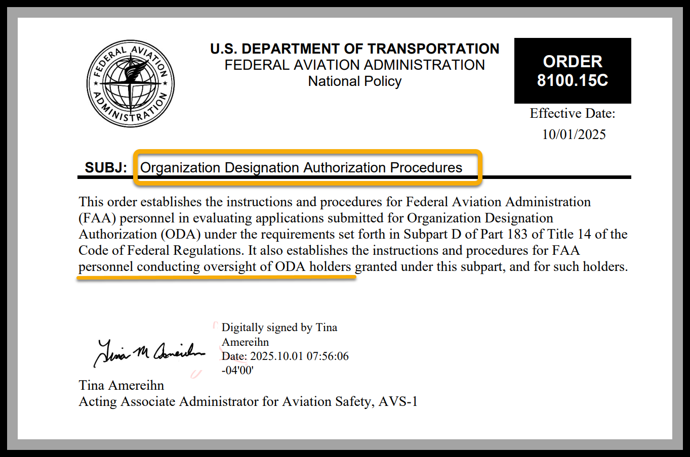 On October 1, 2025, the FAA issued Order 8100.15C, a sweeping rewrite of how it manages delegation.