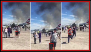 Once again, an airplane required an emergency evacuation and ONCE AGAIN, in spite of the seat back passenger warning[1] and the Flight Attendants’ “FRUITLESSLY YELLING ‘LEAVE ALL BAGS BEHIND!’ …the jaded passengers walk past, clutching their luggage.” [quote and below images of the passengers from Daily Mail]. Apologies to anyone who remembers past blog posts on the same subject [link to two of them], but the repeated events that should have made the average passenger that it is MANDATORY for the safety of ALL PASSENGERS to not impede or harm the egress in such difficult situations.Top of Form