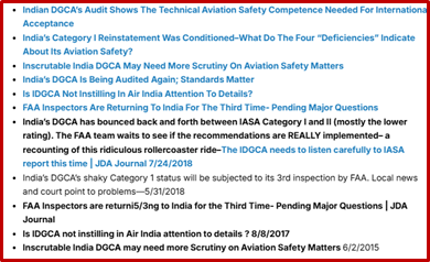 The FAA’s IASA review of this peer regulator found that it met the global aviation safety standards. ICAO also determined that the DGCA’s competence was mostly above the Global average. Furthermore, recently this international organization “…awarded the DIRECTORATE GENERAL OF CIVIL AVIATION OF INDIA a CERTIFICATE FOR ITS PROGRESS IN ESTABLISHING AN EFFECTIVE AVIATION SAFETY OVERSIGHT SYSTEM.” Here is the DGCA’s most recent ICAO USOAP rating-