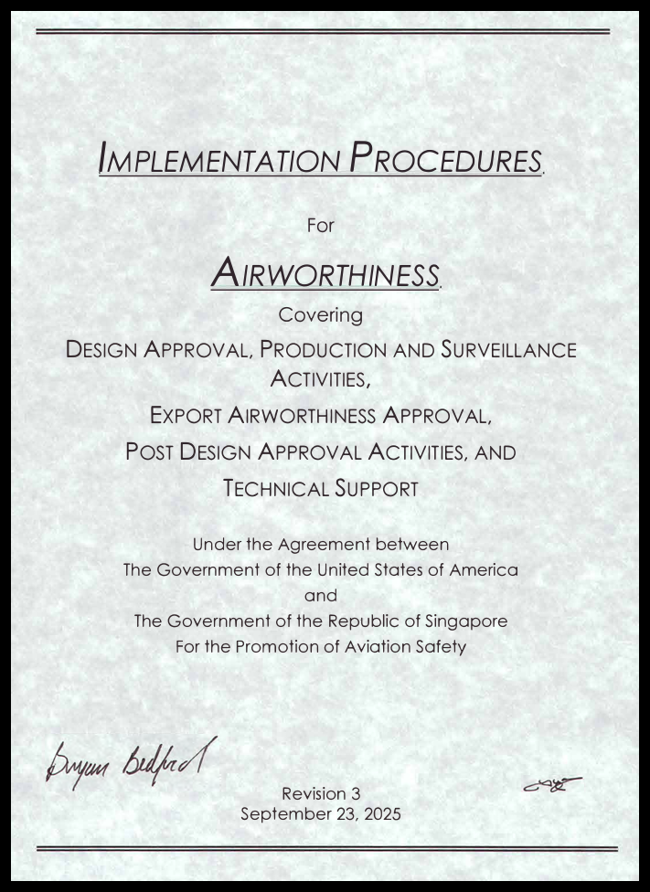 On 23 September 2025, United States Federal Aviation Administration (FAA) Administrator, Bryan Bedford, and Civil Aviation Authority of Singapore (CAAS) Director-General, Han Kok Juan, signed an enhanced Bilateral Aviation Safety Agreement – Implementation Procedures for Airworthiness (BASA-IPA) at the International Civil Aviation Organization (ICAO) 42nd Assembly.