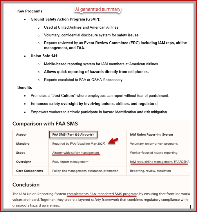 Unlike an erstwhile NPRM, a voluntary SMS at the local level (risks are not uniform among ramps, taxiways, runways, etc.) is THE MOST EFFICACIOUS METHOD to respond to the IAM’s well-documented threat.