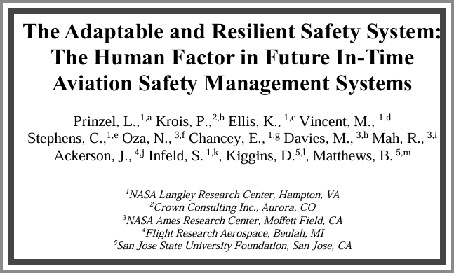 The NASA report, The Adaptable and Resilient Safety System, {see below} is an excellent review of this research, but is 37 pages of small type and academic text. This is an effort to synthesize what the NASA team found: