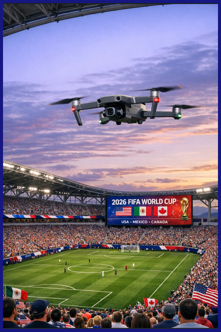- The density of these UAS flights was growing so as to pose a safety risk AND the prospects of possible abuse of these aerial vehicles INCREASES with the USA being one of the venues for the 2026 FIFA games.