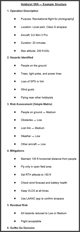For any commercial operation, the critical nature of the FAA authorities that you hold makes the SRA process far more consequential. When you start your enterprise, it would be valuable to spend time with your team and an outside expert defining a number of checklists so as to prepare for the most likely challenges that your business will face.