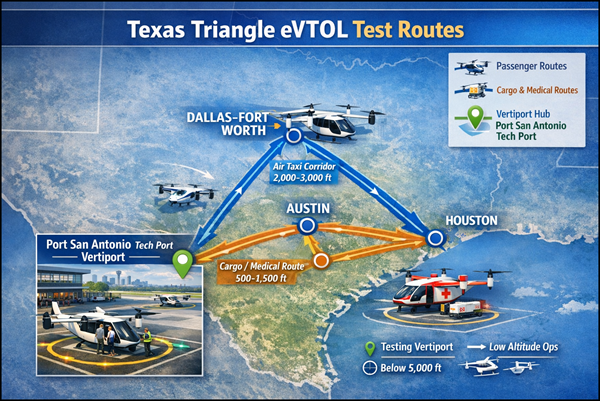 PORT SAN ANTONIO is positioning itself as a testing ground for emerging air taxi technology as Texas joins a federal pilot program.