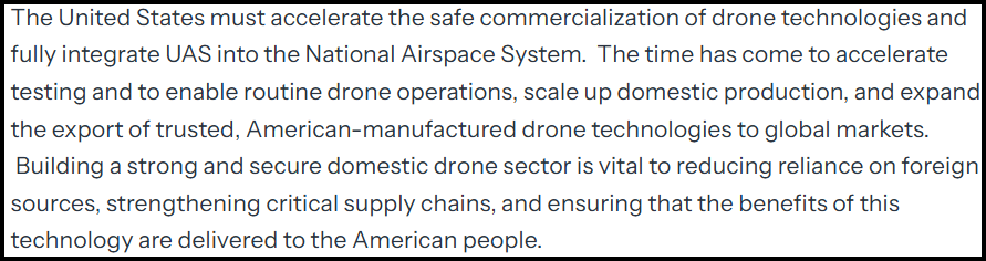 On June 2025 the White House released an Executive Order entitled “UNLEASHING AMERICAN DRONE DOMINANCE”. In that seminal decree, the President commanded—