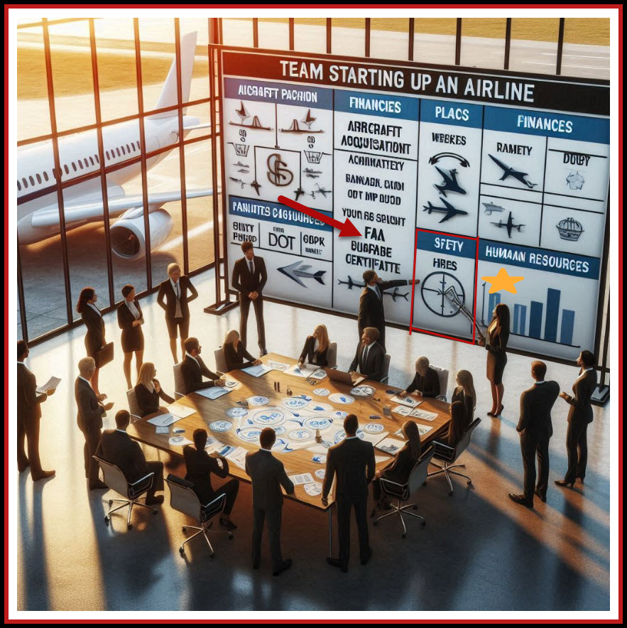 There is no single menu for meeting all of these items on the FAA checklist, but the STAFF’S EXPECTATIONS, without regard to the specifics of the airline – i.e. its proposed fleet, the number of aircraft, the type and geography of their schedule, etc., are CONSISTENT in the depth of information submitted, the clarity of the draft manuals, the necessary credentials of the Part 5 essential safety team, the safety focus in all of the enterprise, knowledge of the FARs, etc.