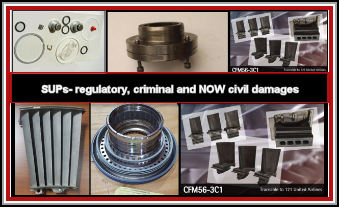 The instances of inadvertent SUPs (“never assume malice when incompetence is equally likely.” [paraphrase of Hanlon’s Razor]) are not of interest for regulatory or criminal responses by the government. However, the financial damage to an airline that has installed SUPs into its fleet can be substantial; the below article suggests that a civil damage case may be an option. Without having to obtain the concurrence of the Regulator (FAA) or a government prosecutor, the decision to be a “plaintiff” (and the budget to pay for it) is the decision of the harmed private company.
